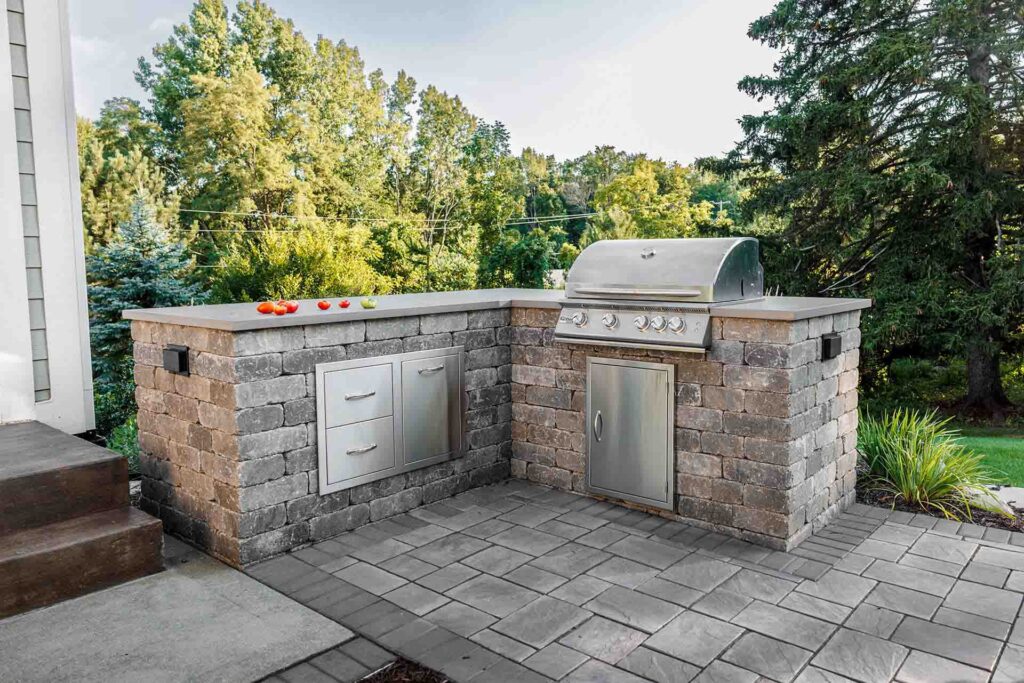 What was once a neglected and uneven patch of grass is now the heart of this Cascade, MI home’s outdoor lifestyle. We completely transformed this unusable backyard into a stunning patio retreat—complete with an outdoor kitchen and gathering space. Designed for both functionality and beauty, this custom patio was built to host family parties, quiet mornings, and everything in between.