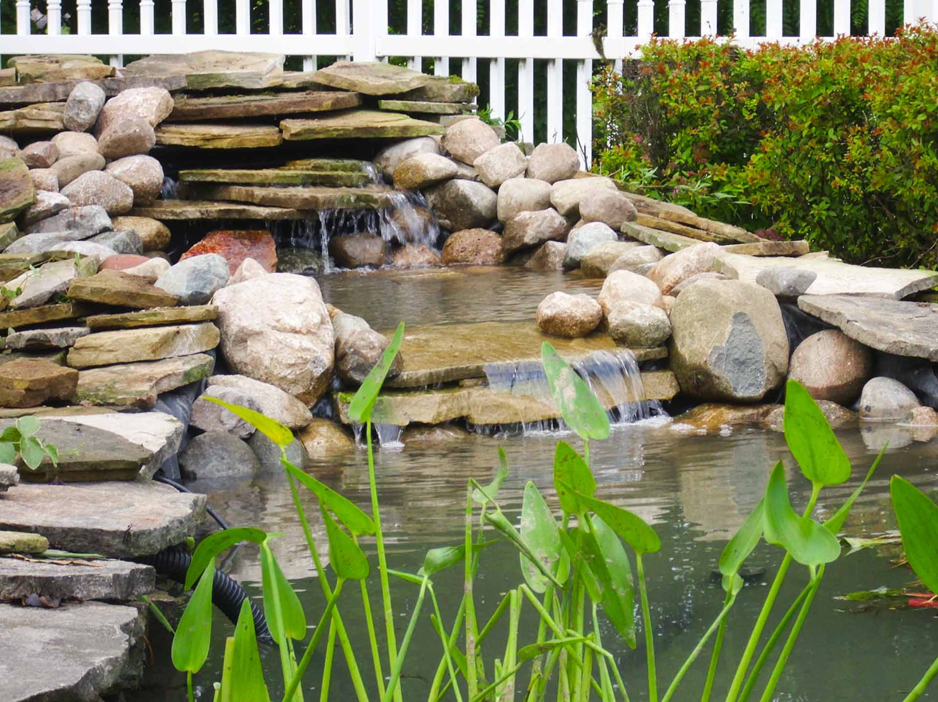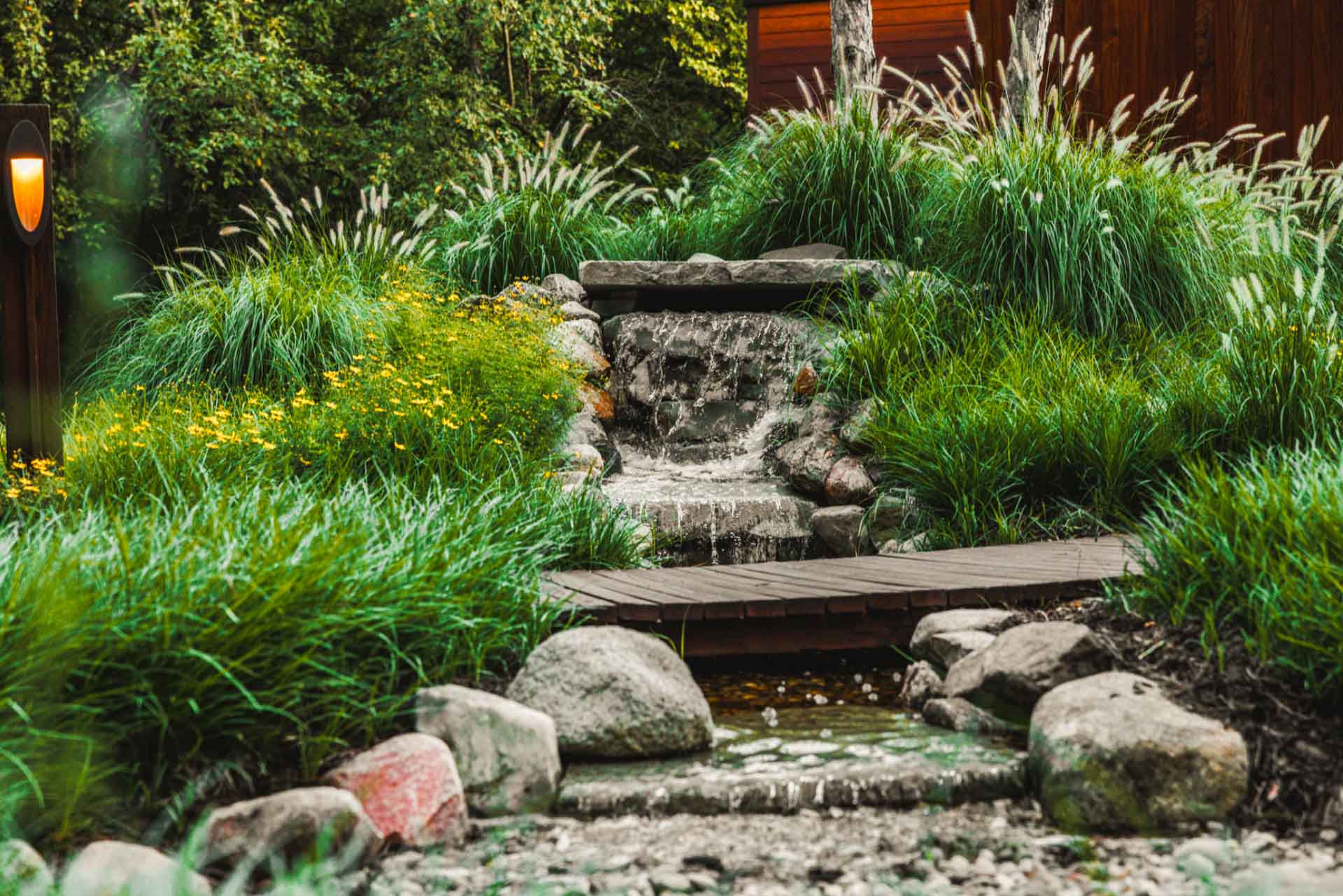Waterfalls – Add movement and sound as water flows over stone or into a pond